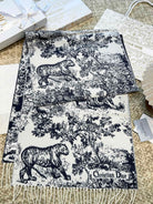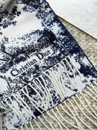 SCARF 220 CM IN NAVY BLUE MIX WHITE MONOGRAM CASHMERE AND WOOL 413656