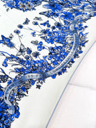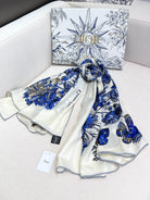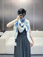 SQUARE SCARF 140 CM IN WHITE MIX COBALT BLUE CASHMERE AND SILK 390940