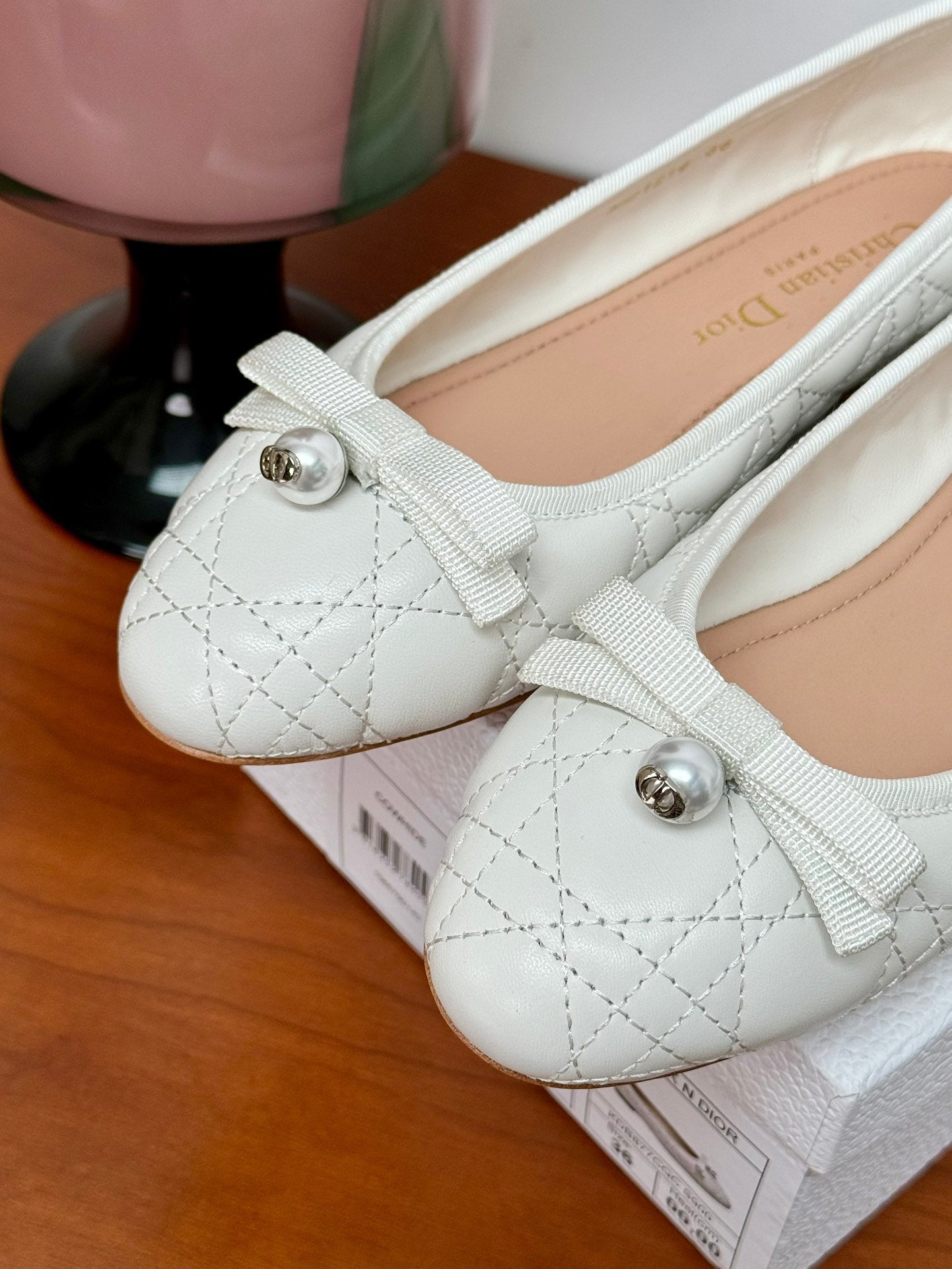 cd ballet flat white lambskin mop front