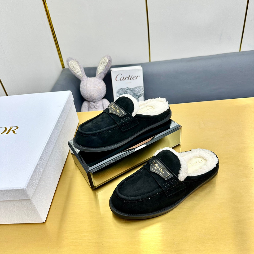 CD Boy Mule In Black Suede With Wool Fleece Lining 111828