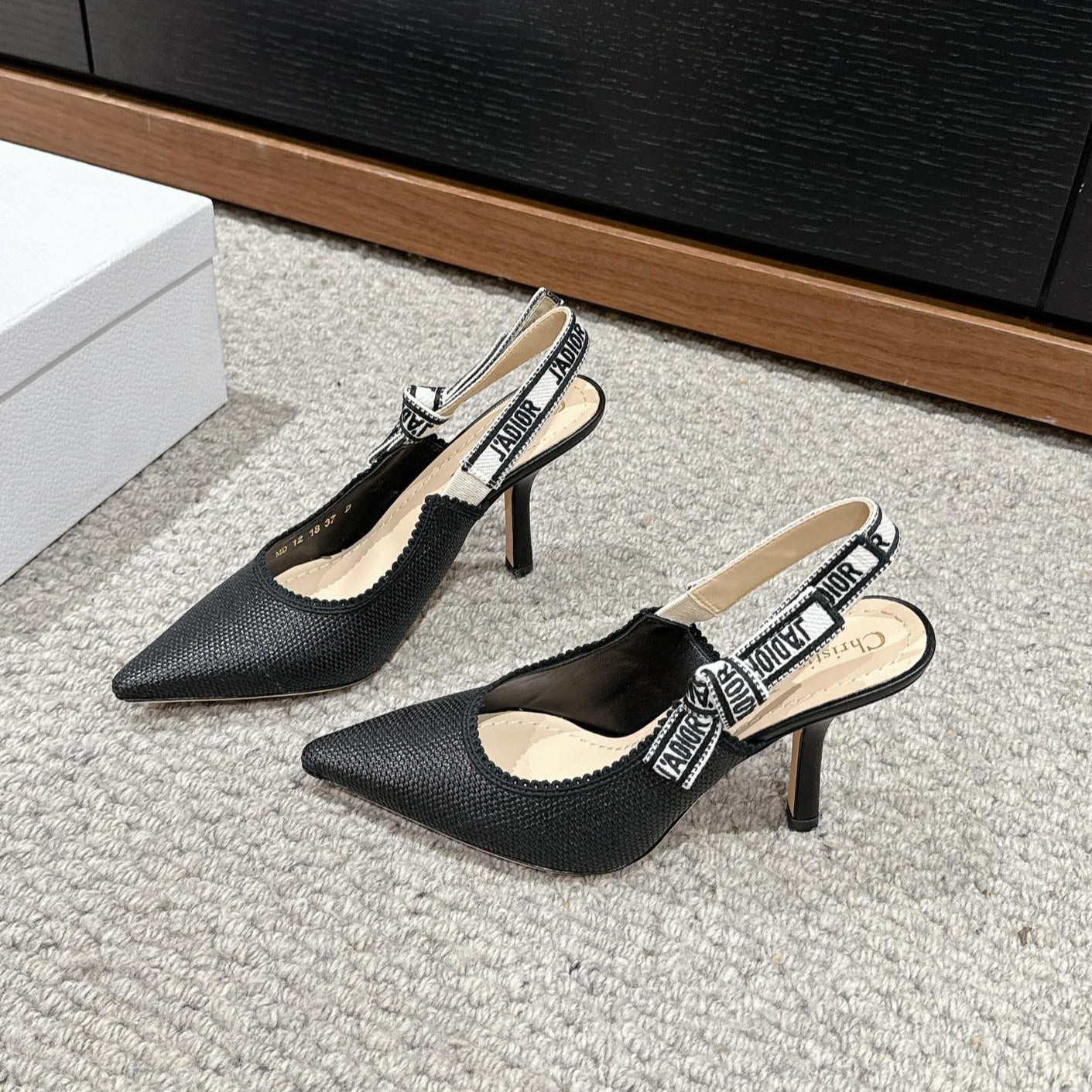 cd slingback 100 black raffia lambskin