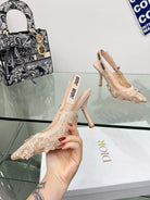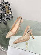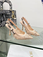 J'Adior Slingback Pump 95mm In Beige Floral Embroidered Lace Fabric 100842