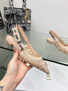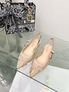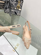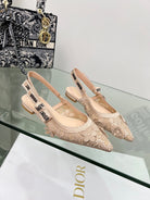 J'Adior Slingback Pump In Beige Floral Embroidered Lace Fabric 100840