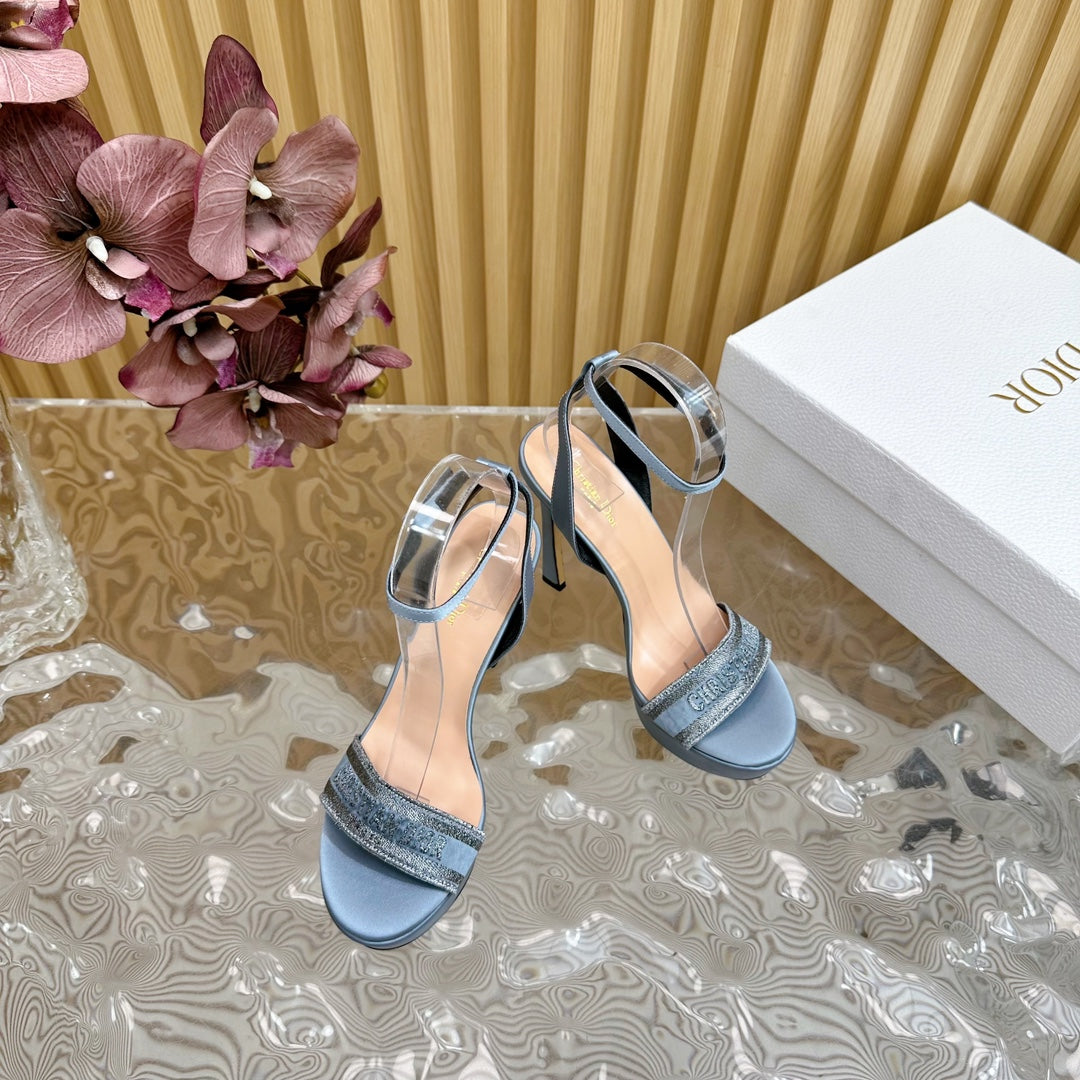 CD Dway Heeled Sandal 120mm Blue Silk And Lambskin