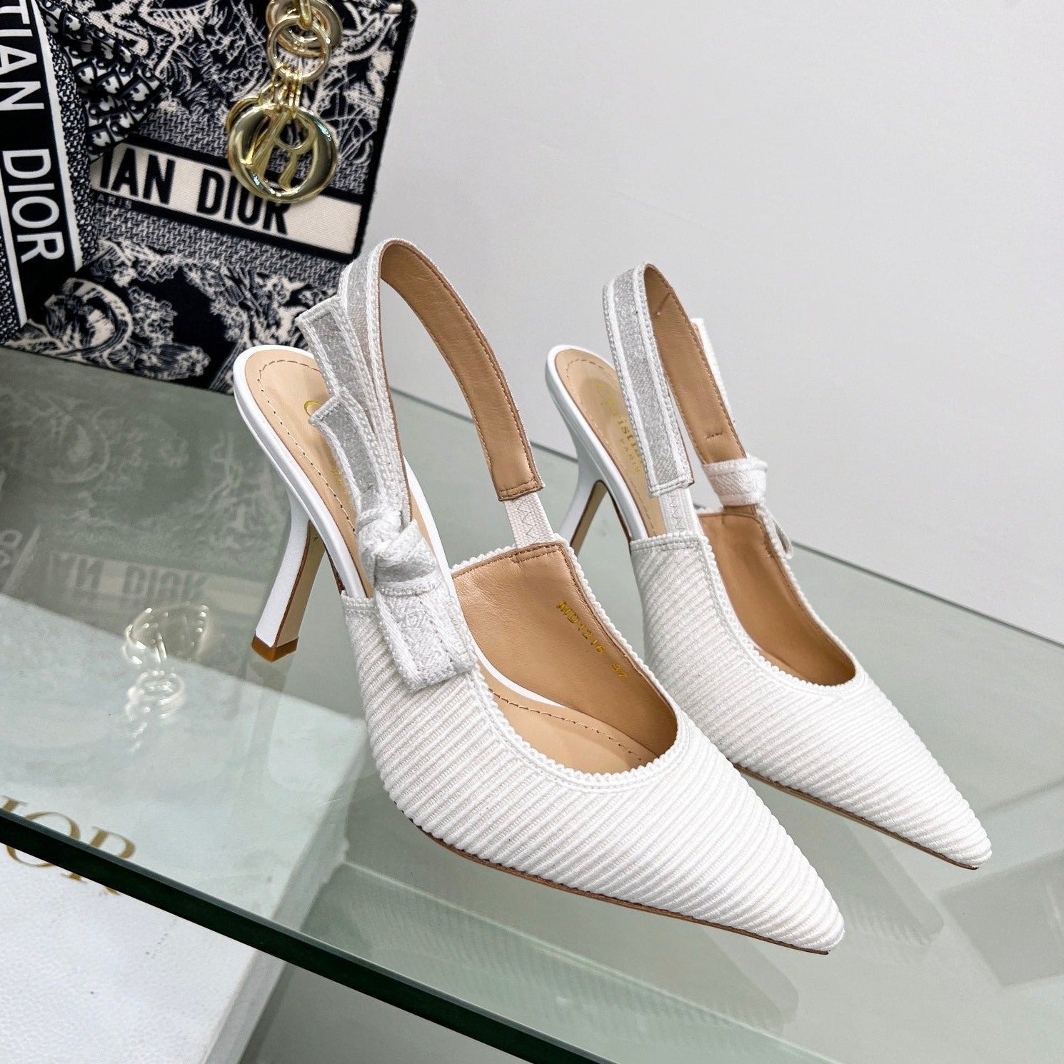 cd slingback pump 95 embroidered cotton white calfskin resin pearl