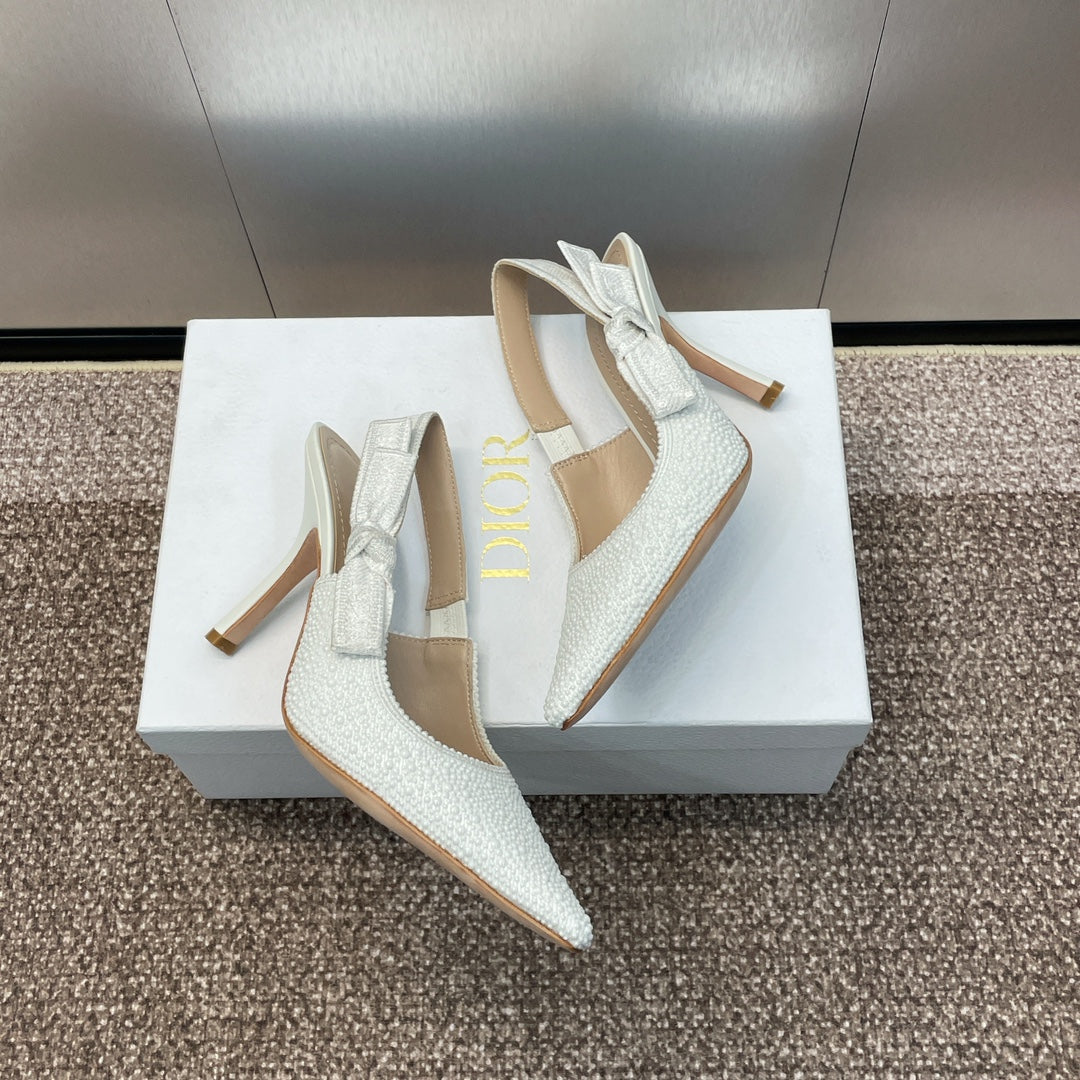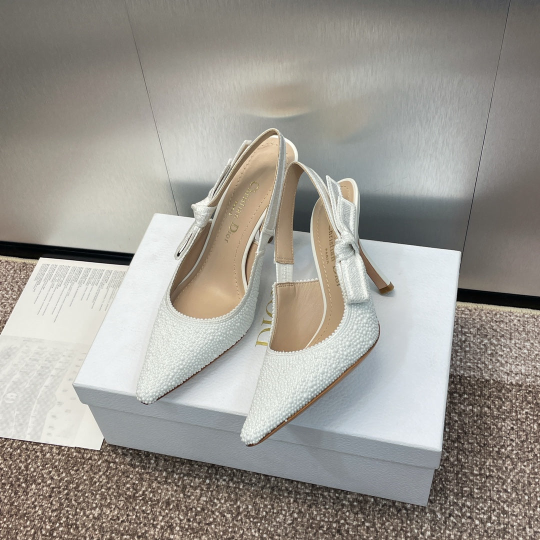 cd slingback pump 65 embroidered cotton white calfskin resin pearl