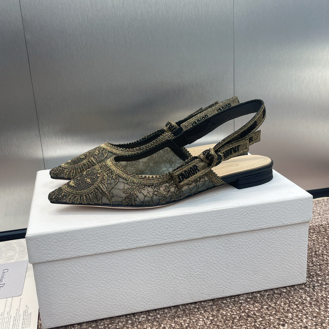 cd slingback flat embroidered cotton white calfskin resin pearl