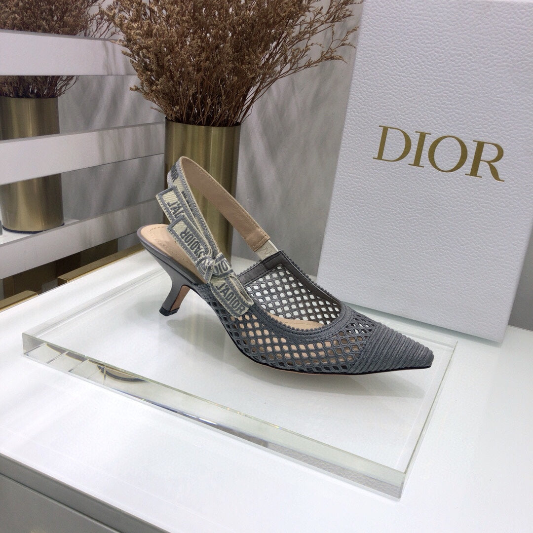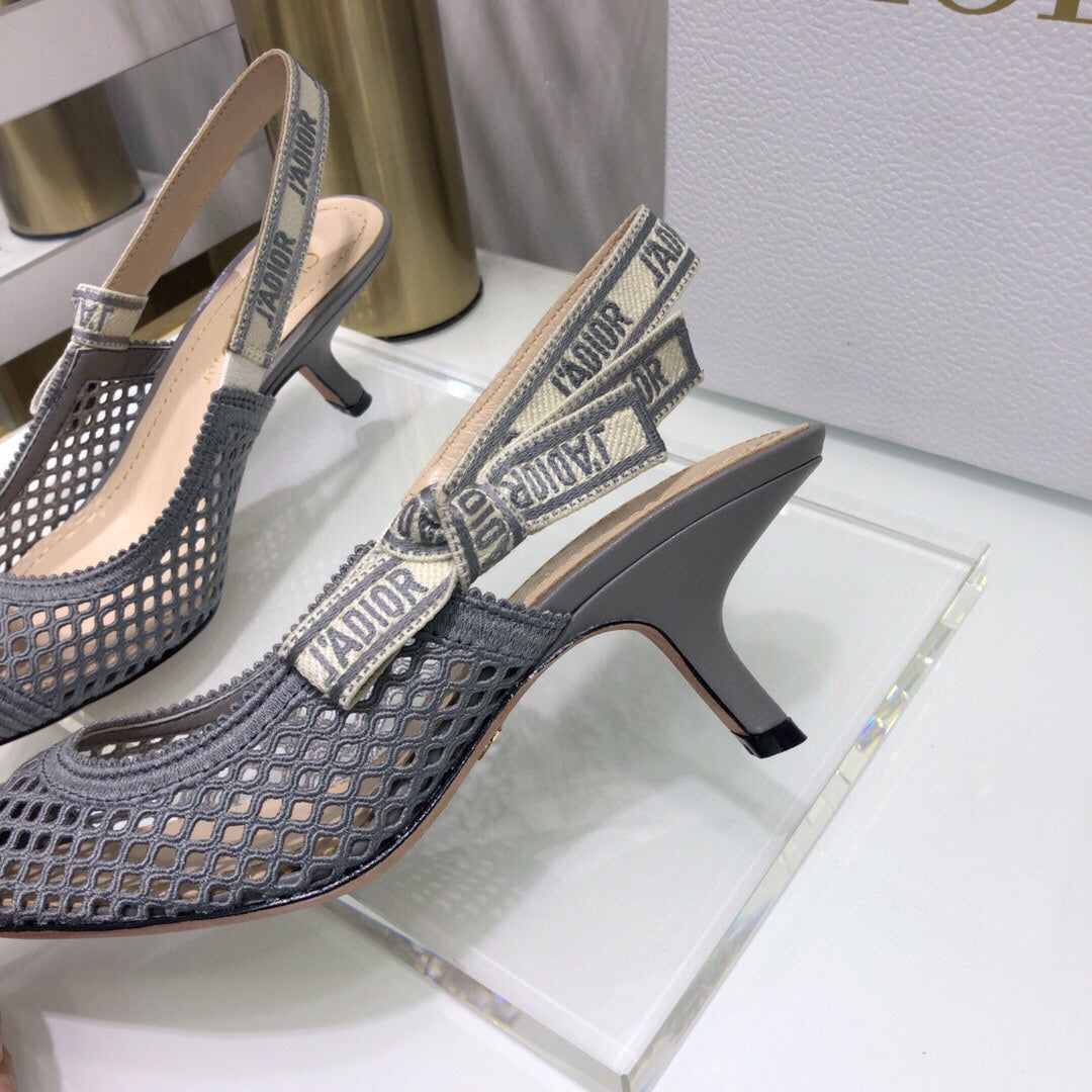 JAdior slingback pumps 95 transparent mesh grey embroidered cotton