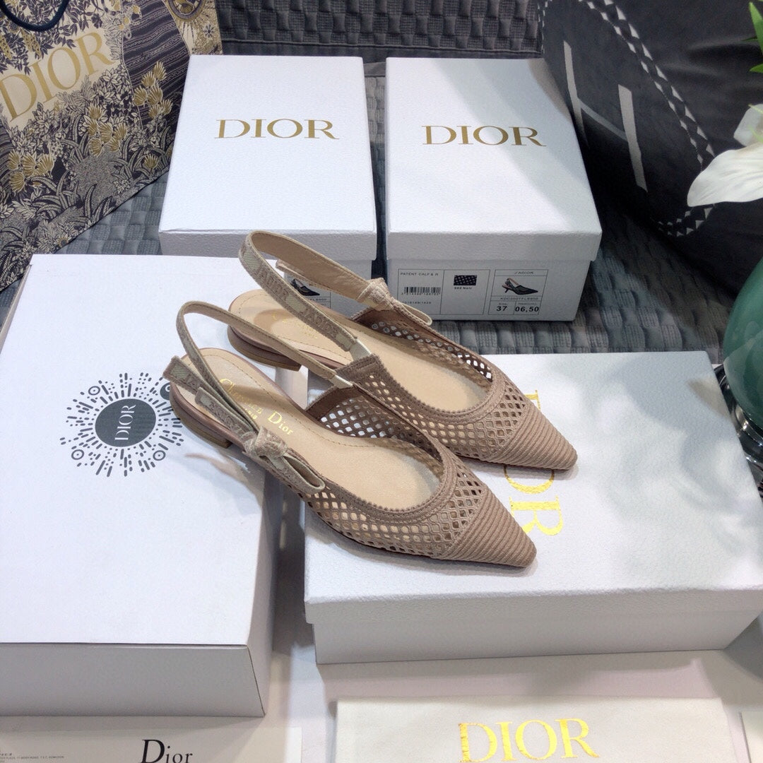 JAdior slingback flat transparent mesh beige embroidered cotton