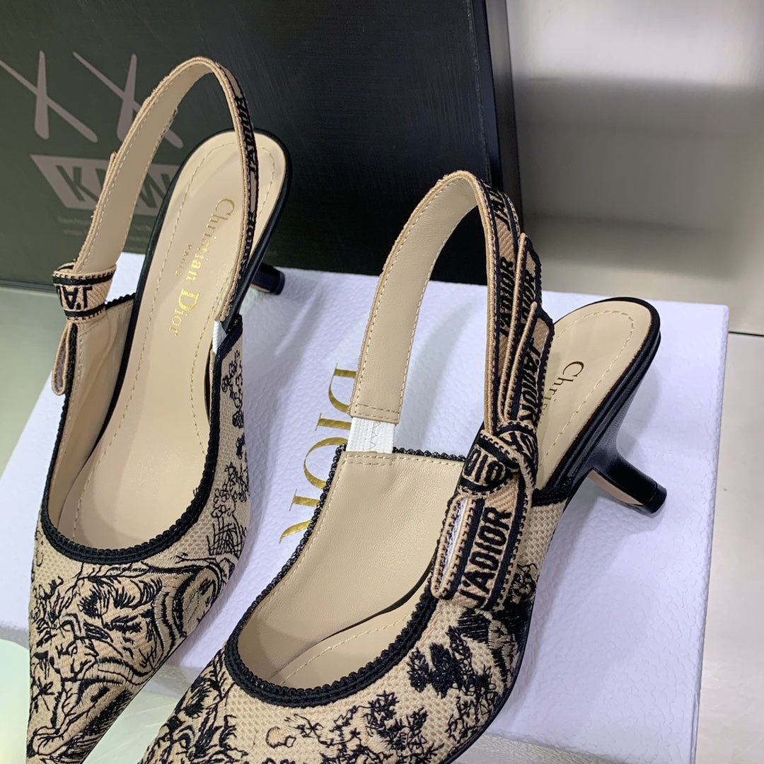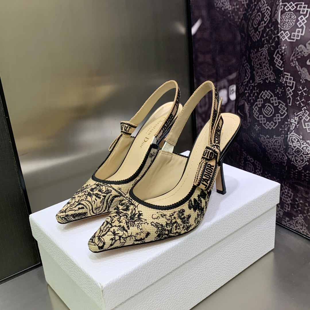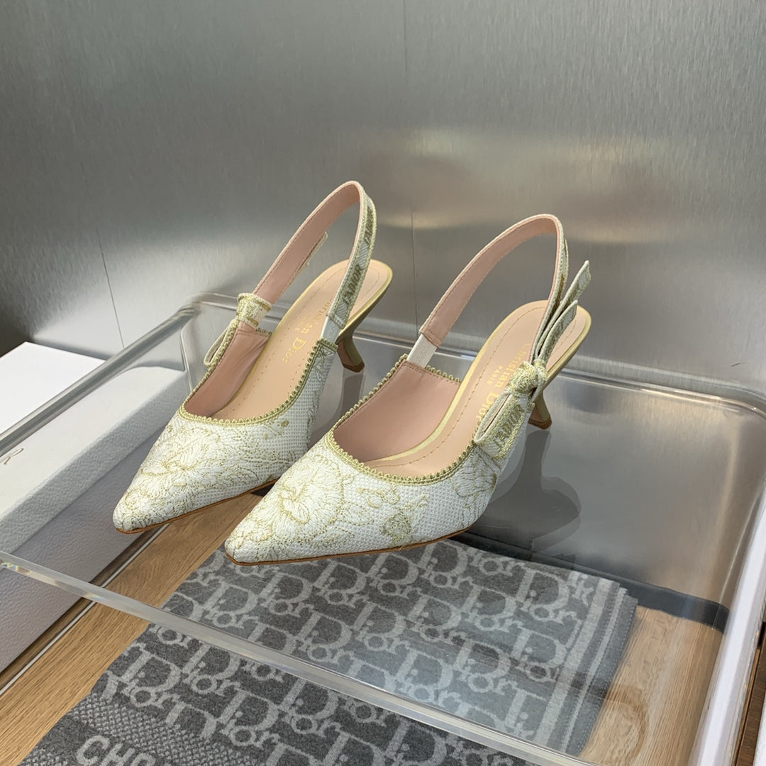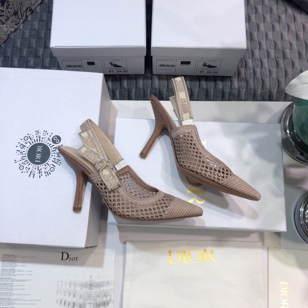 JAdior slingback pumps 95 transparent mesh beige embroidered cotton