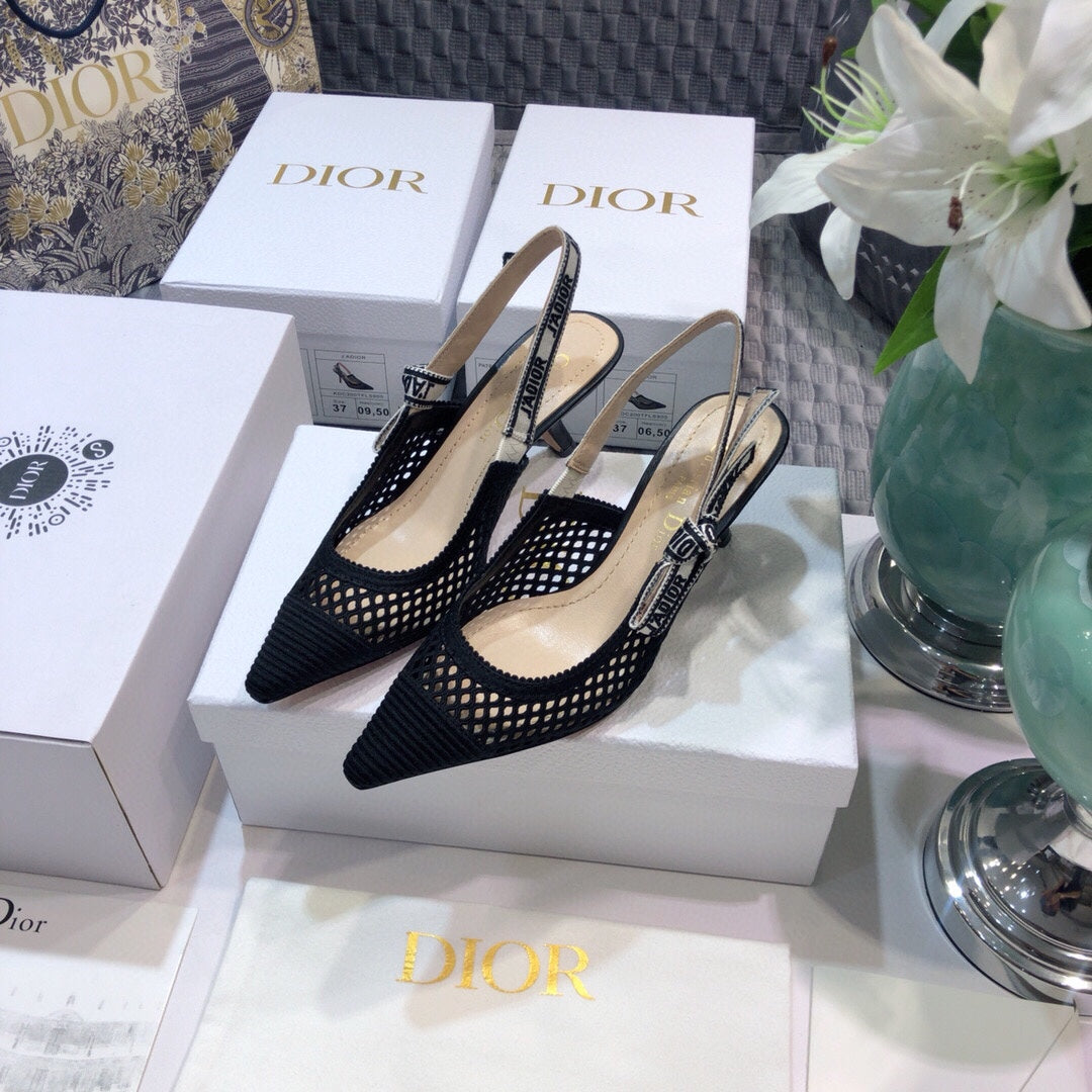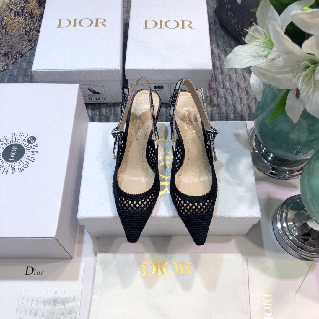 JAdior slingback pumps 65 full transparent mesh black embroidered cotton