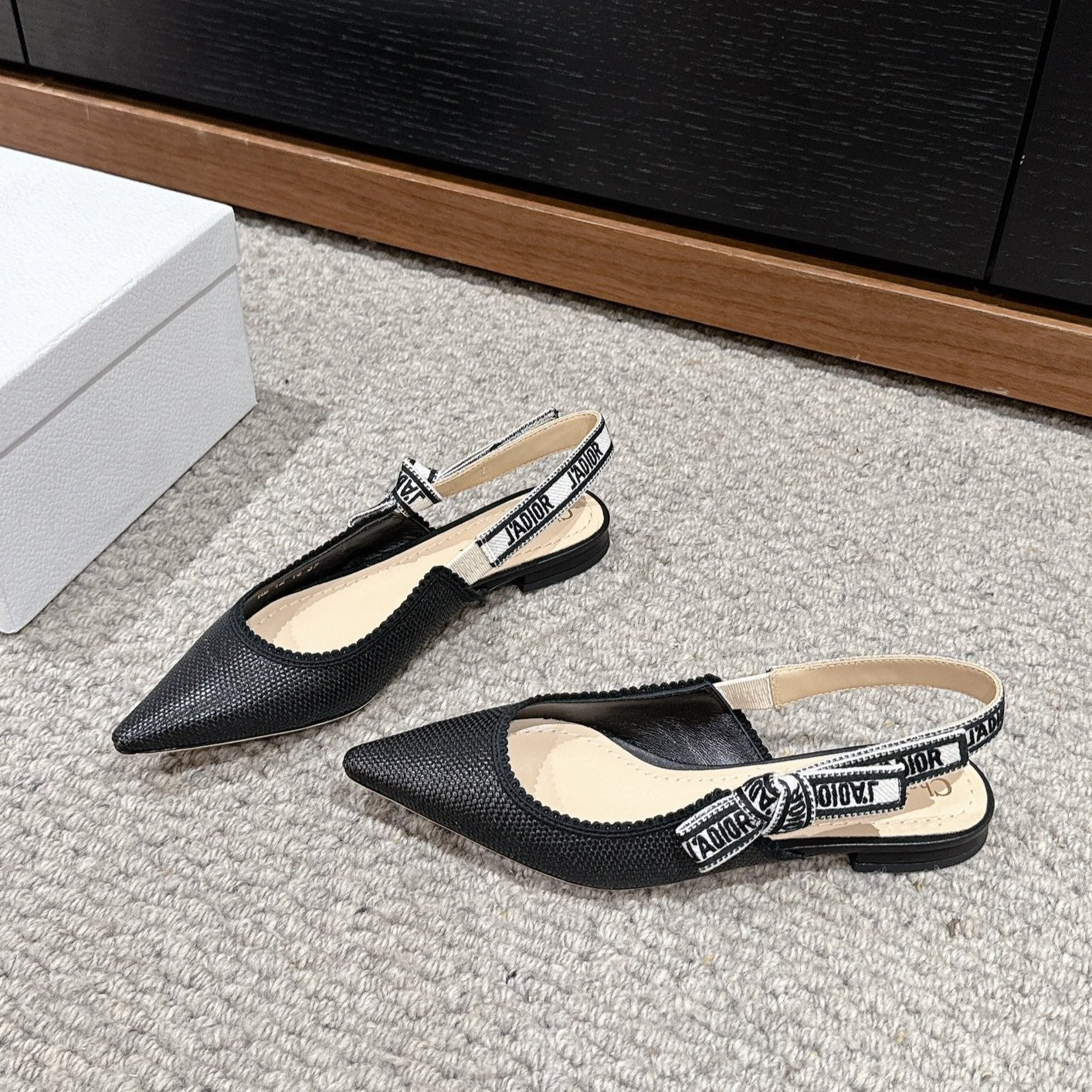 JAdior slingback flat full transparent mesh black embroidered cotton