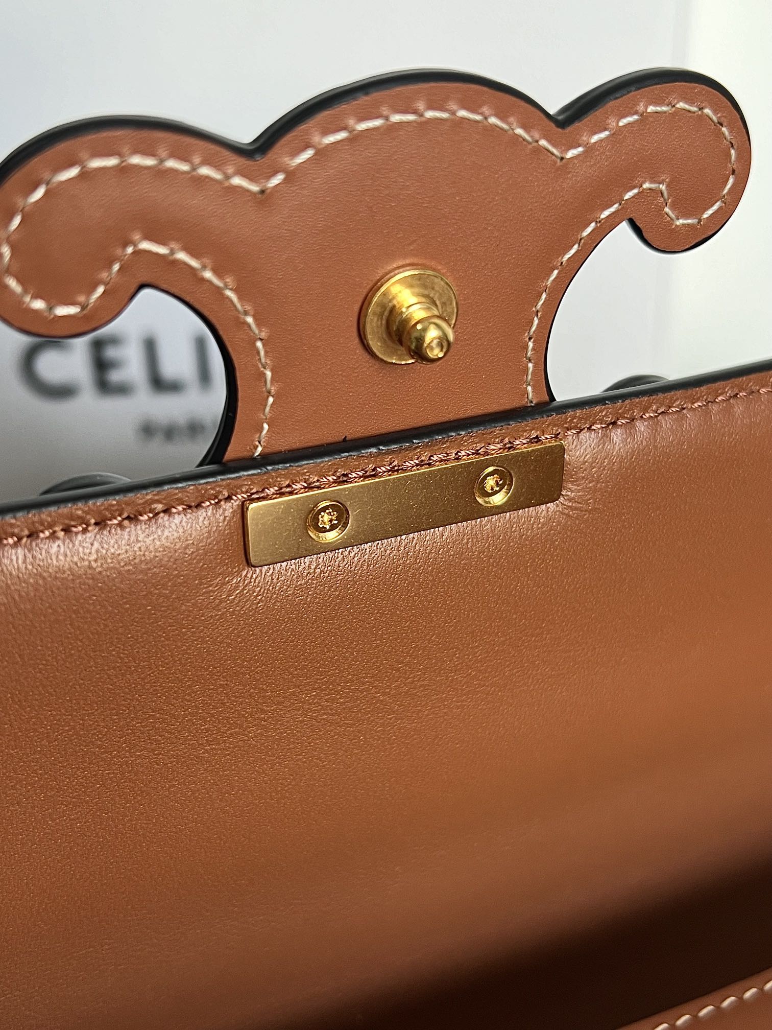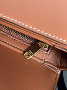 - Color: Brown leather, Gold hardware