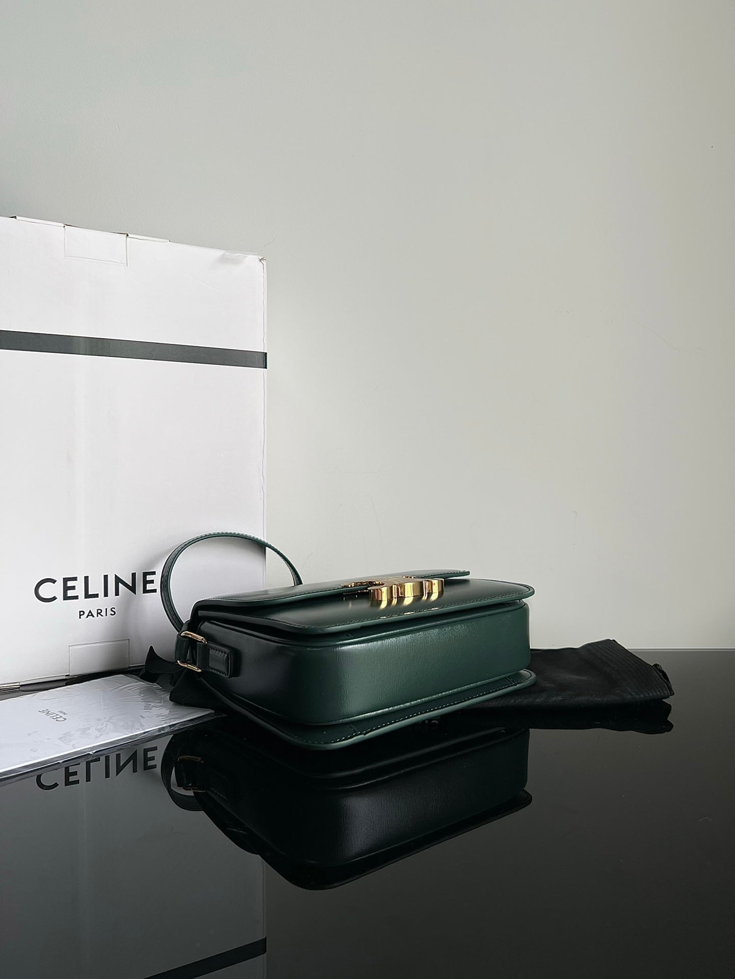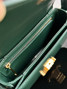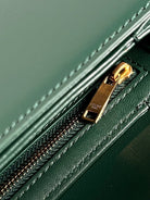 - Color: Green leather, Gold hardware