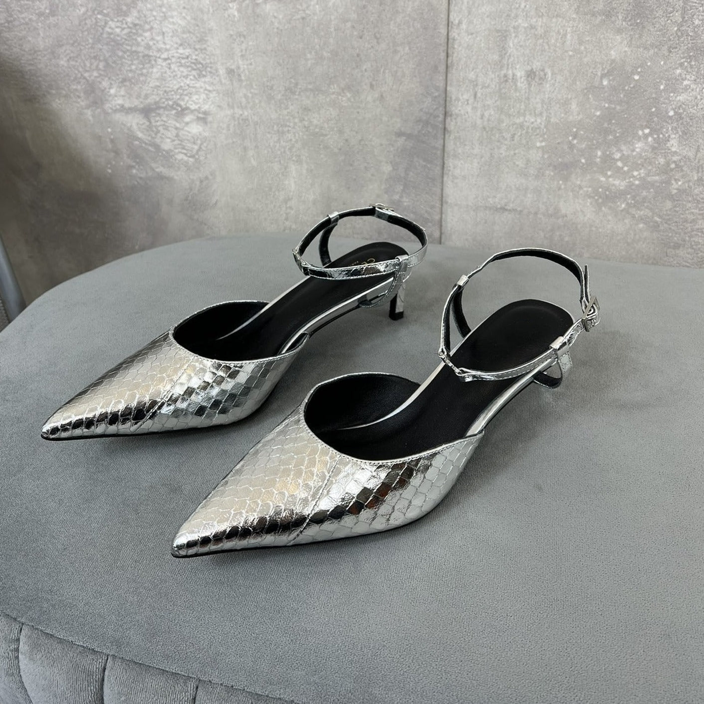 FLAT SANDALS WITH DOUBLE STRAP-DESIGN LEATHER SILVER