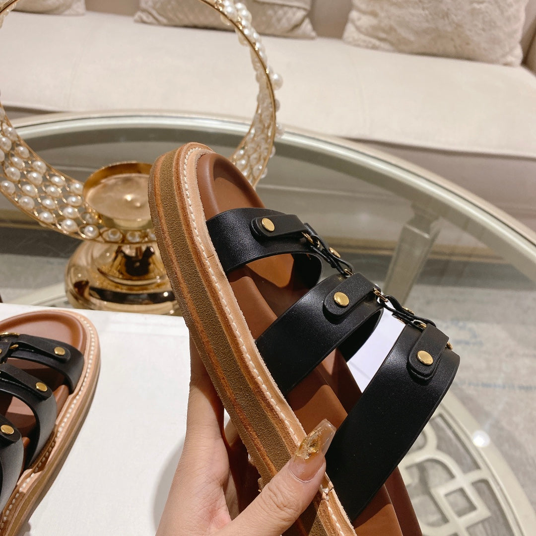 HIGH FLAT SANDALS WITH DOUBLE STRAP-DESIGN LEATHER BLACK