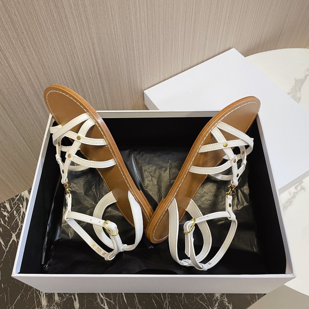 FLAT SANDALS WITH DOUBLE STRAP-DESIGN LEATHER WHITE
