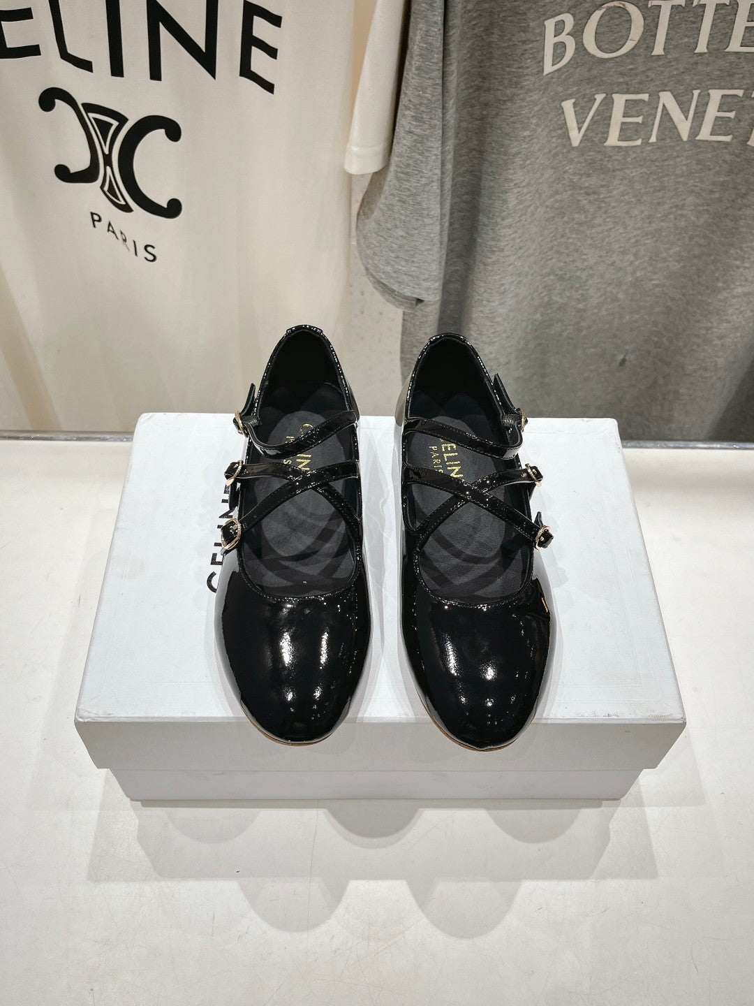 Celin Ballerina Triple Strap Black Patent Calfskin