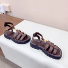 LYMPIA GLADIATOR SANDAL IN CALFSKIN CHOCOLATE BROWN