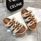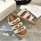 TIPPI SLIDE IN WHITE SHEARLING AND BROWN CALFSKIN