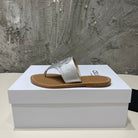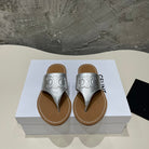 WOMEN TRIOMPHE FLAT THONG IN CALFSKIN SILVER