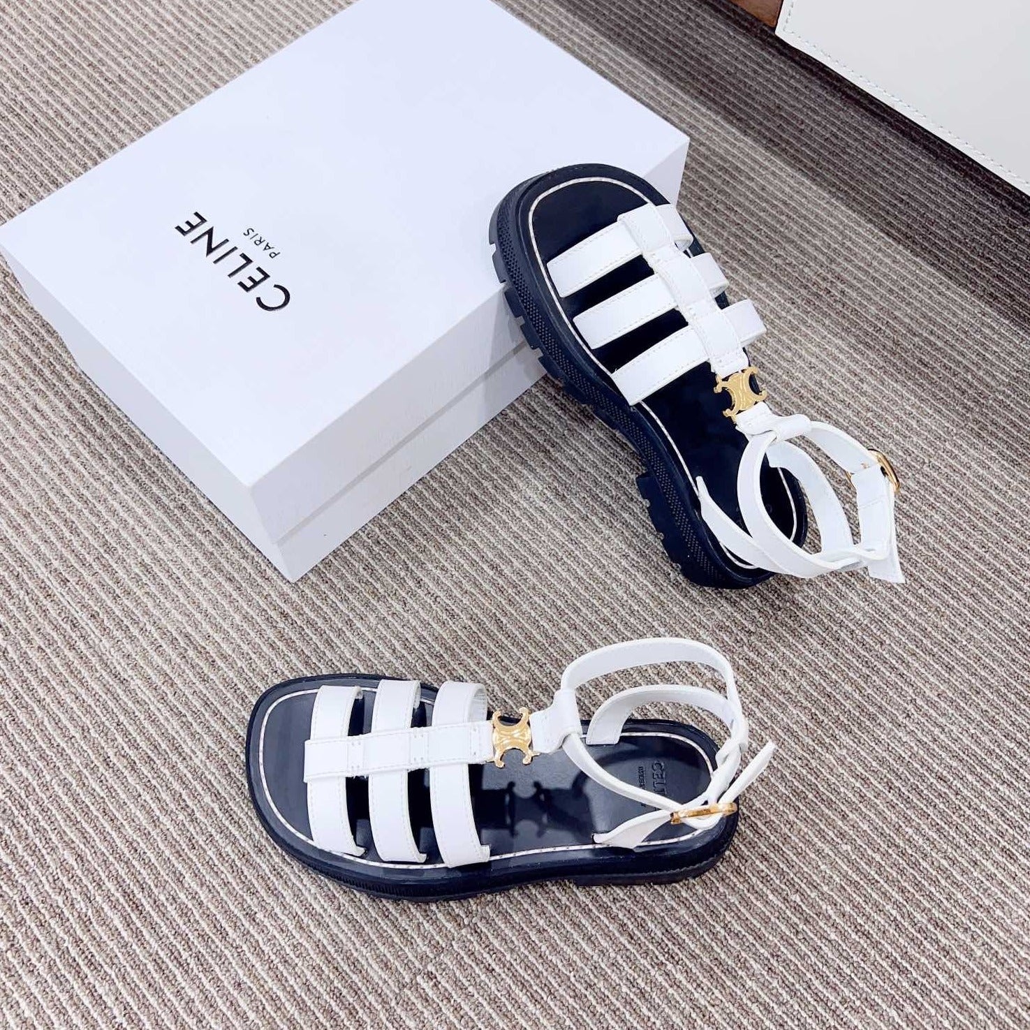 SANDALS FLAT SHOES WHITE CARAMEL BROWN