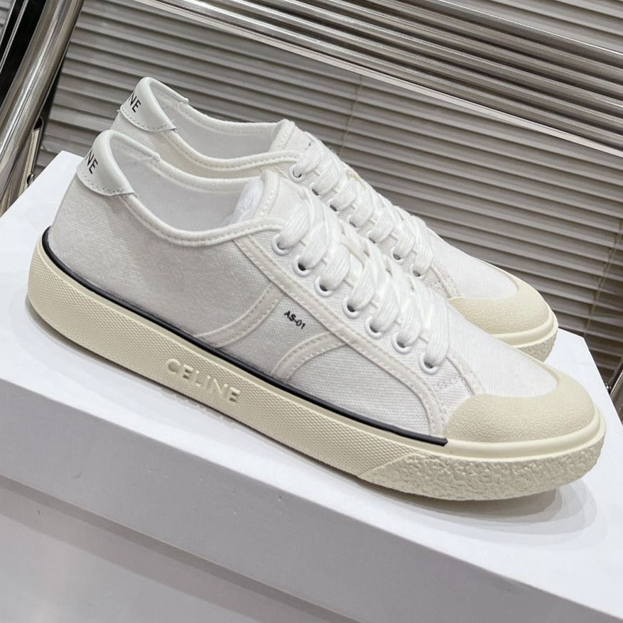JANE SNEAKERS LOW LACE-UP WITH TRIOMPHE PATCH IN CANVAS AND CALFSKIN WHITE