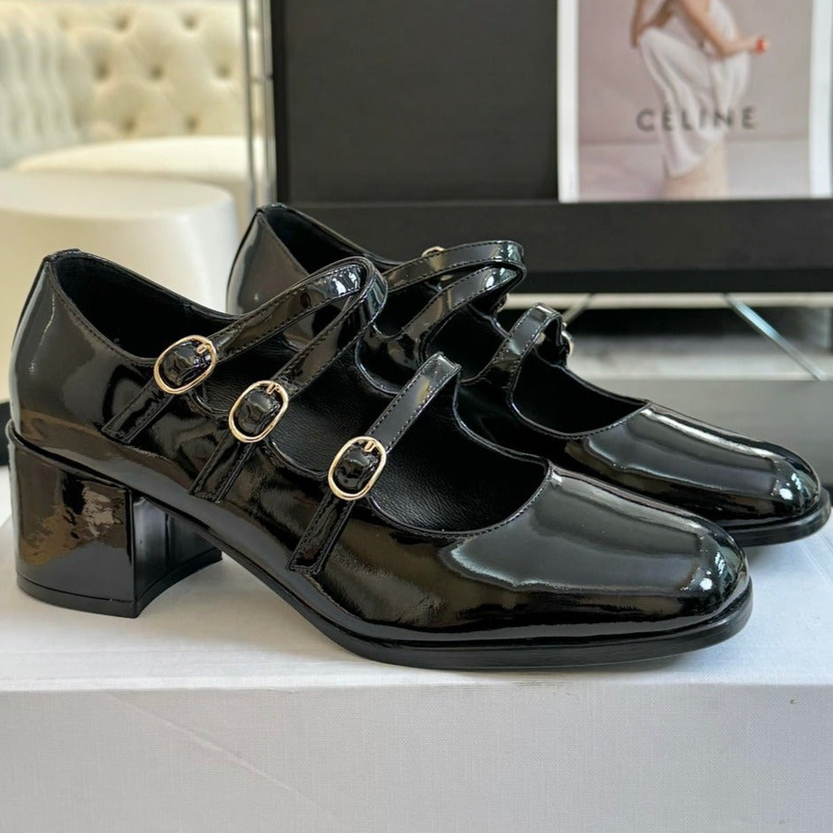 WOMEN'S HIGH HEELS WITH ROUND TOE GLOSSY BLACK SPECIFIC COWHIDE