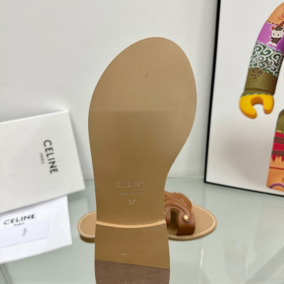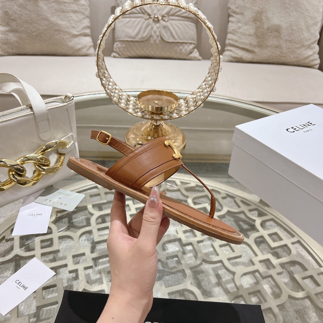 LYMPIA TRIOMPHE THONG IN CALFSKIN CARAMEL BROWN