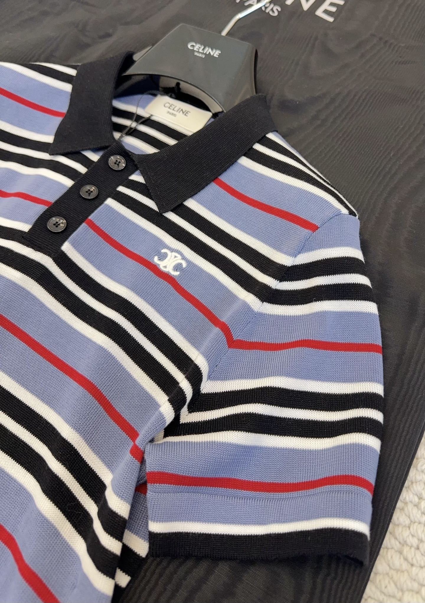 Celine 2025 Striped Polo Shirt Blue Black White Cotton