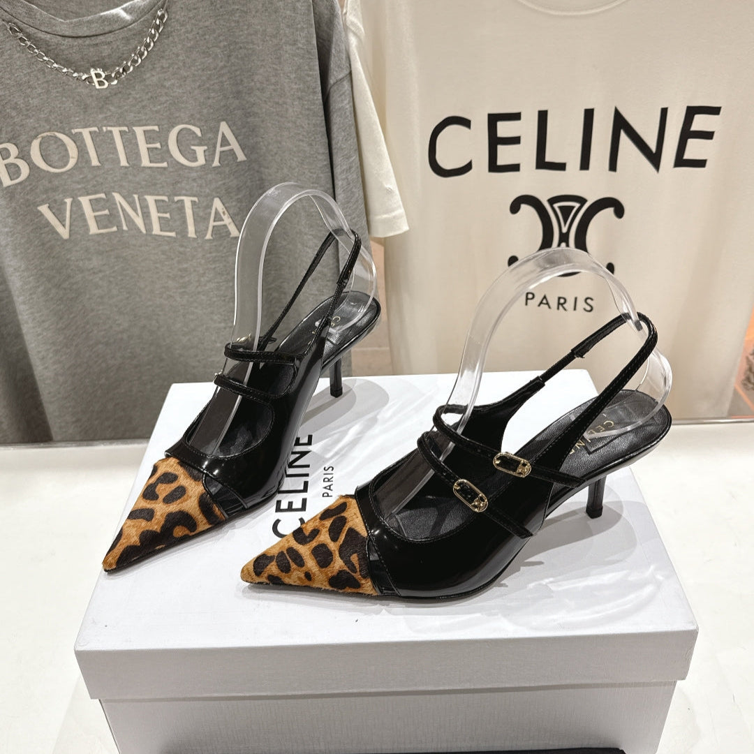CELINE Slingback Leopard Black Leather 285983