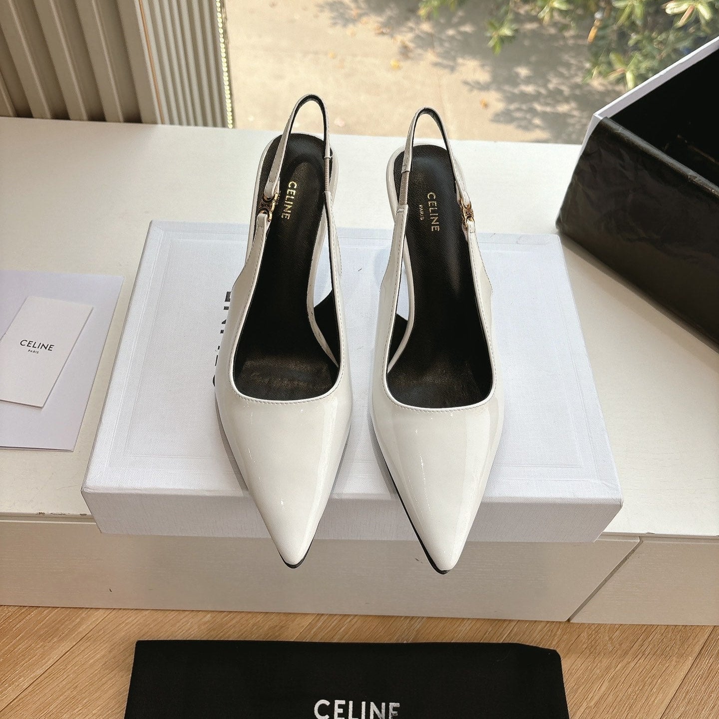 CELINE Slingbacks White Patent Leather 285940