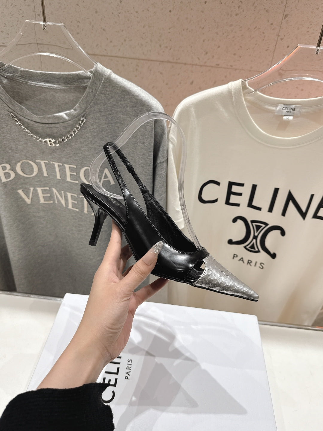 Celine 25C Slingback Pump Black mix Silver Sheepskin 236772