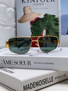 TRIOMPHE SUNGLASS 512997 IN GOLD METAL BLUE LENSES