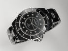 J12 Date Automatic Black Ceramic Diamond Numerals Black Dial Black Steel Hands