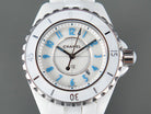 J12 Date Quartz White Ceramic Blue Numerals White Dial