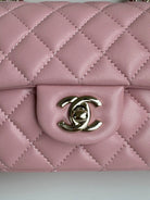 24c mini flap bag 20cm with top handle pink calfskin silver hardware