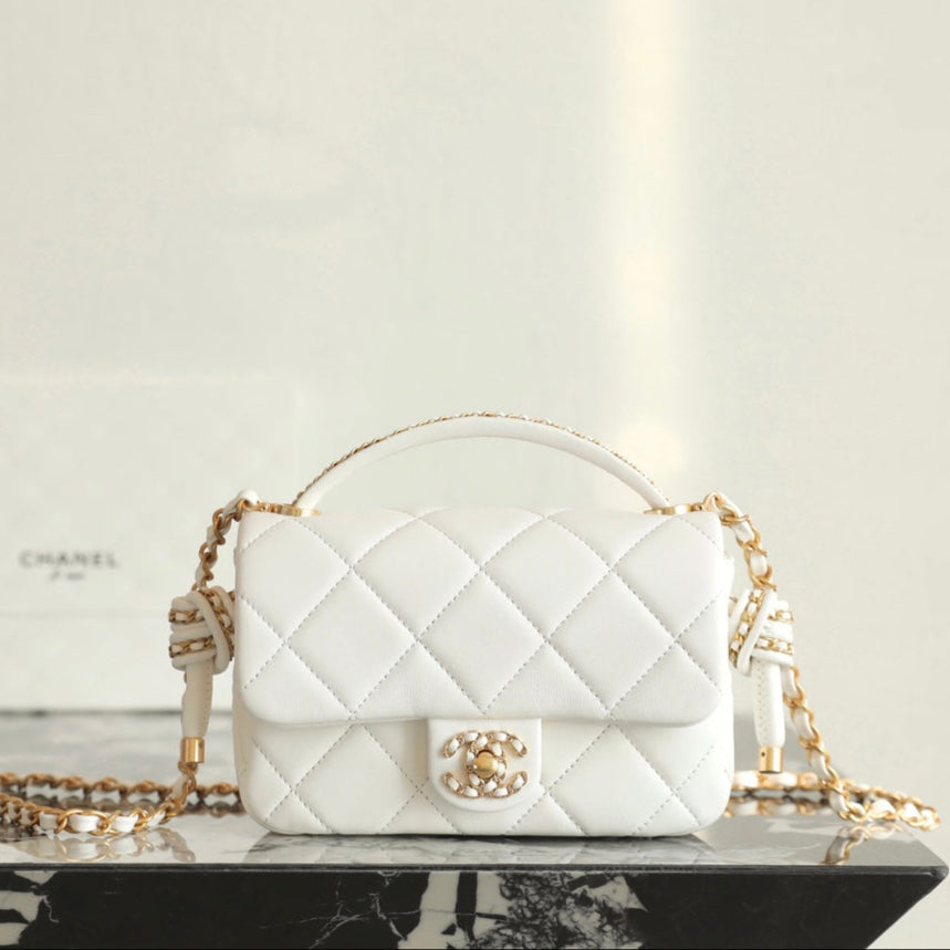 25C Mini Flap Bag Top Handle 20cm Black Lambskin Black Hardware Premium Version