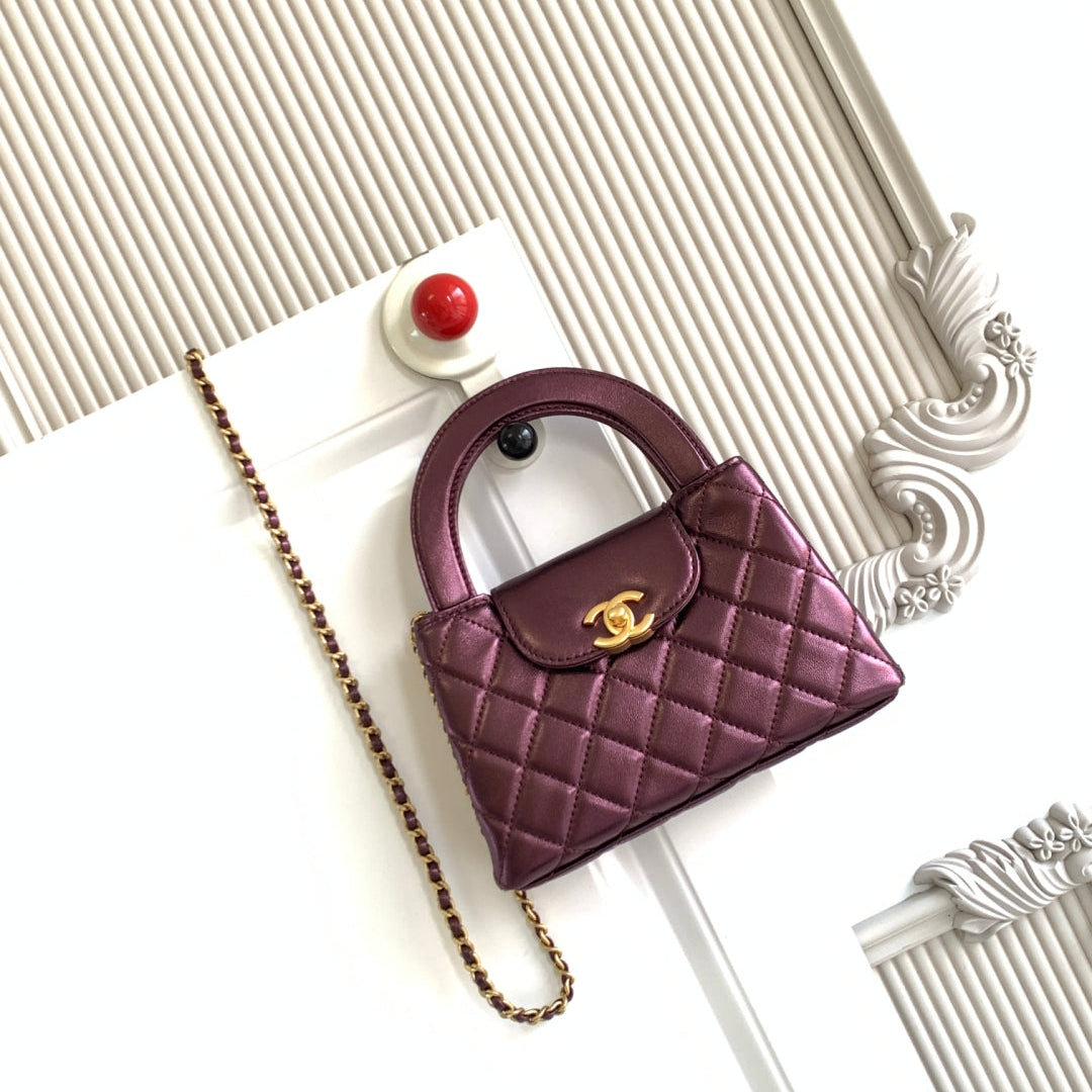 cc 24a nano 19cm kelly shopper bag burgundy metallic lambskin
