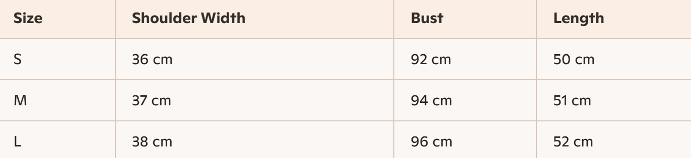 - For more information, please see the size guide below