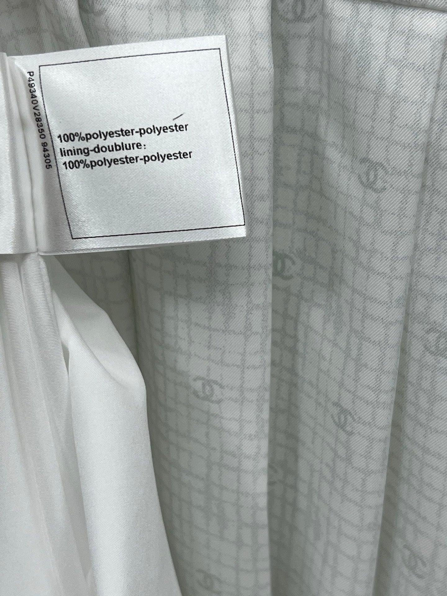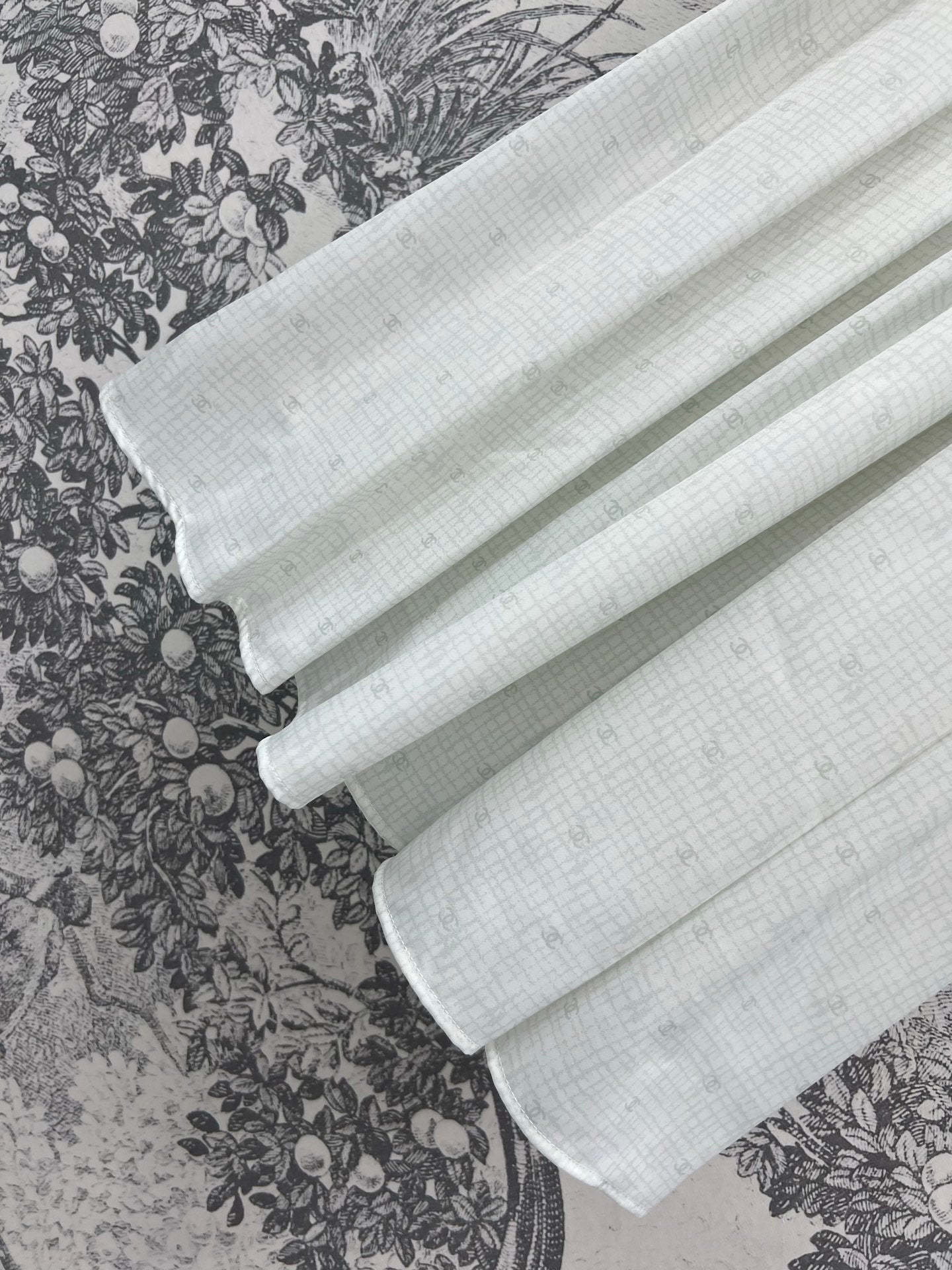 CC 25 Logo Plaid Short-sleeved Dress White Polyester Fiber