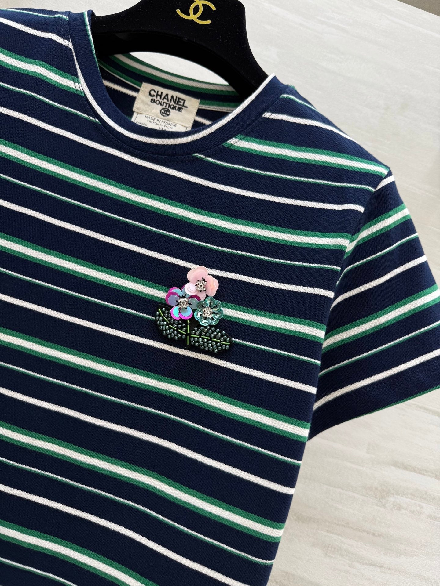 CC Beaded Flowers Shirt Dark Blue Cotton