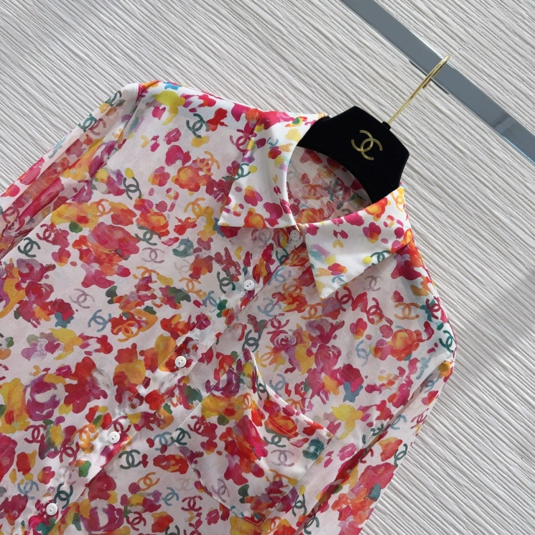 CC shirt In Black camellia Silk