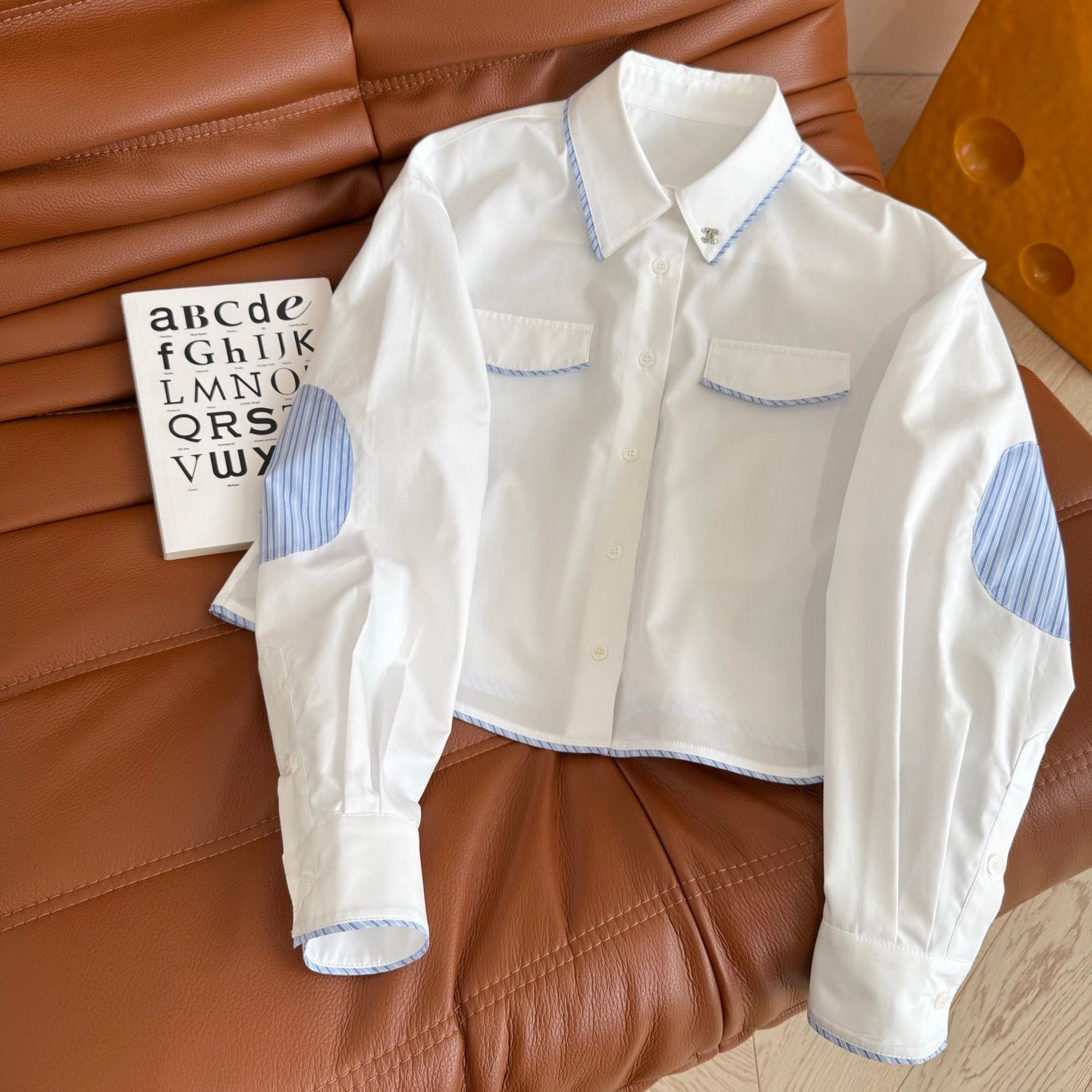 CC 25 Three-dimensional Floral Bow Shirt White Statin Fabric