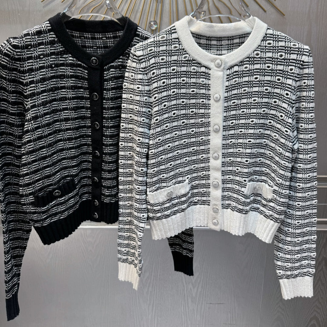 CC 25 Cardigan Black And White Cashmere 226856