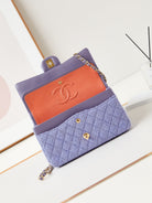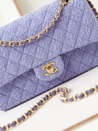 24p medium flap bag 25cm purple blue tweed gold hardware