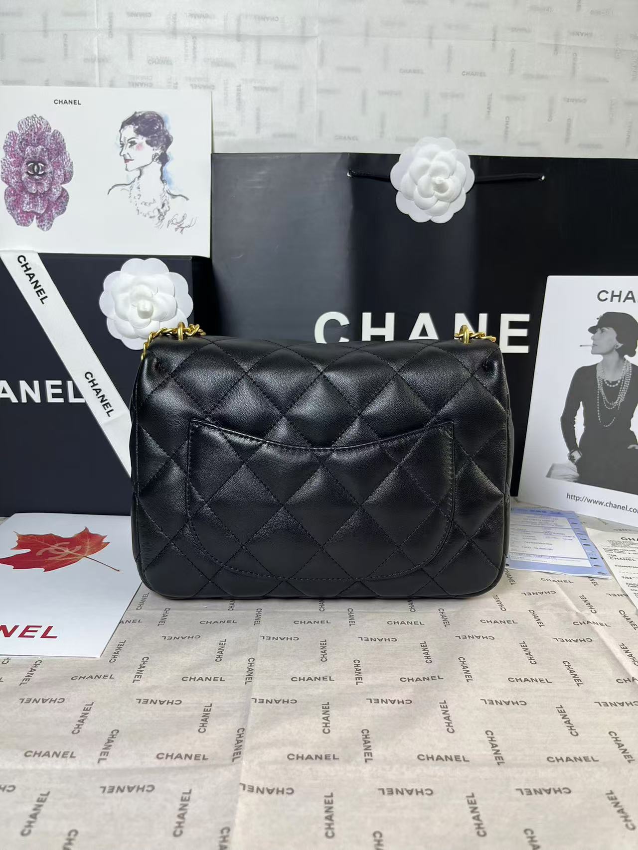 25C Mini Flap 24cm Black Lambskin Gold Heart Hardware