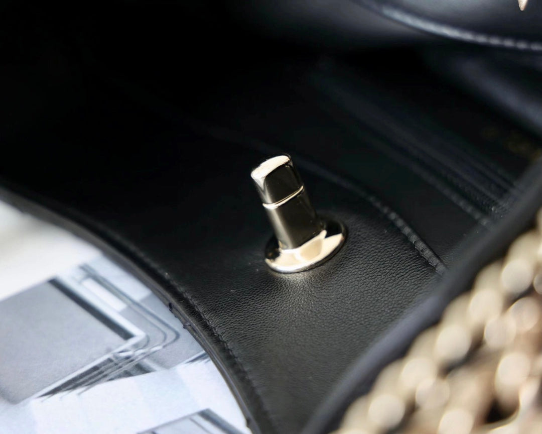 cc hobo bag 26cm black lambskin silver hardware