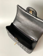 mini flap bag top handle 20cm black lambskin gold hardware
