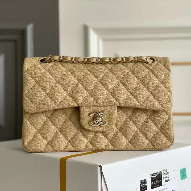 flap bag mini 23cm beige caviar gold hardware